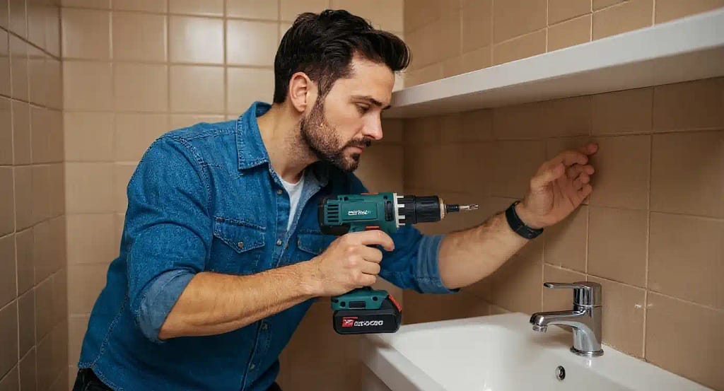 Paredes revestidas com ladrilhos, como as encontradas em banheiros e cozinhas, exigem atenção especial na montagem e fixação. Embora o revestimento ofereça proteção à parede, o azulejo é um material rígido e frágil, que pode trincar ou quebrar durante a perfuração se não houver cuidado.