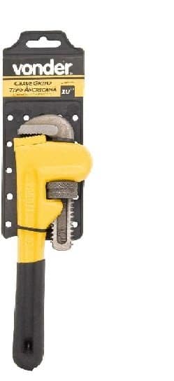 A chave inglesa ou grifo serve para soltar porcas e conexões de diferentes diâmetros no registro. Marcas sugeridas: Vonder, Tramontina e Irwin — escolha um modelo com bom acabamento e ajuste preciso para evitar danificar porcas e roscas.