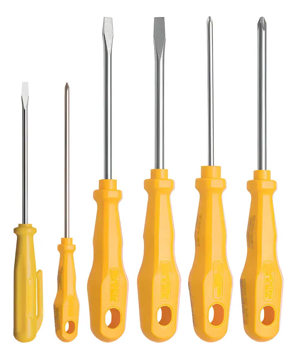 A chave de fenda é utilizada para remover tampas e parafusos que protegem o mecanismo do registro. Marcas recomendadas: Tramontina (linha profissional) e Stanley (FatMax) — ambas oferecem durabilidade e boa ergonomia. Para trabalhos mais finos, tenha uma chave de fenda de ponta magnética e tamanhos variados.