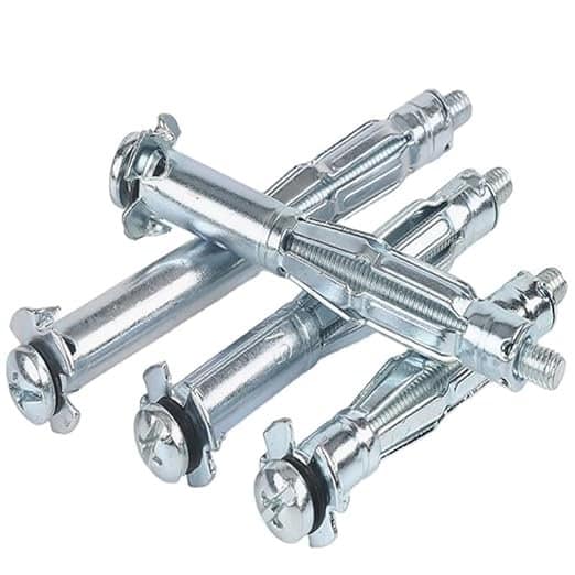 2. Bucha Metálica (ou Toggler): Para cargas pesadas (TVs e armários). Ela tem uma haste de metal que fica transversal atrás do gesso.